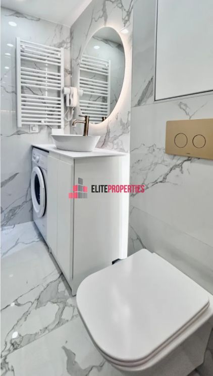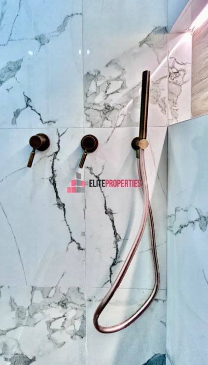 Chāo xiàndài de háohuá yùshì pèibèi línyù, dài nèizhì shuǐxiāng de xǐshǒu pén hé dài xiàndài jìngzǐ de xǐliǎn pén. Yùshì hái pèibèi xǐyījī hé chuīfēngjī.