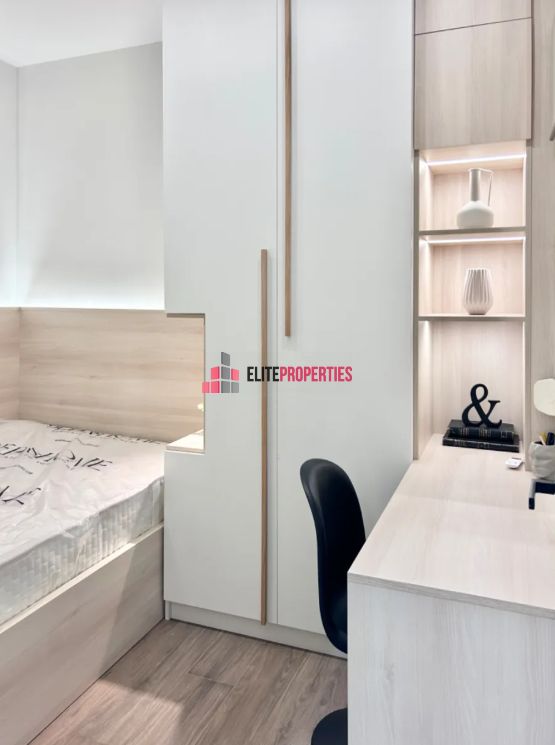 这套现代化的两卧室公寓配备齐全的厨房和浴室,现正出租。每间卧室均配有一张带储物空间的双人床、衣柜、带书架的书桌、电视和空调。每间卧室都设有窗户,采光通风俱佳。
