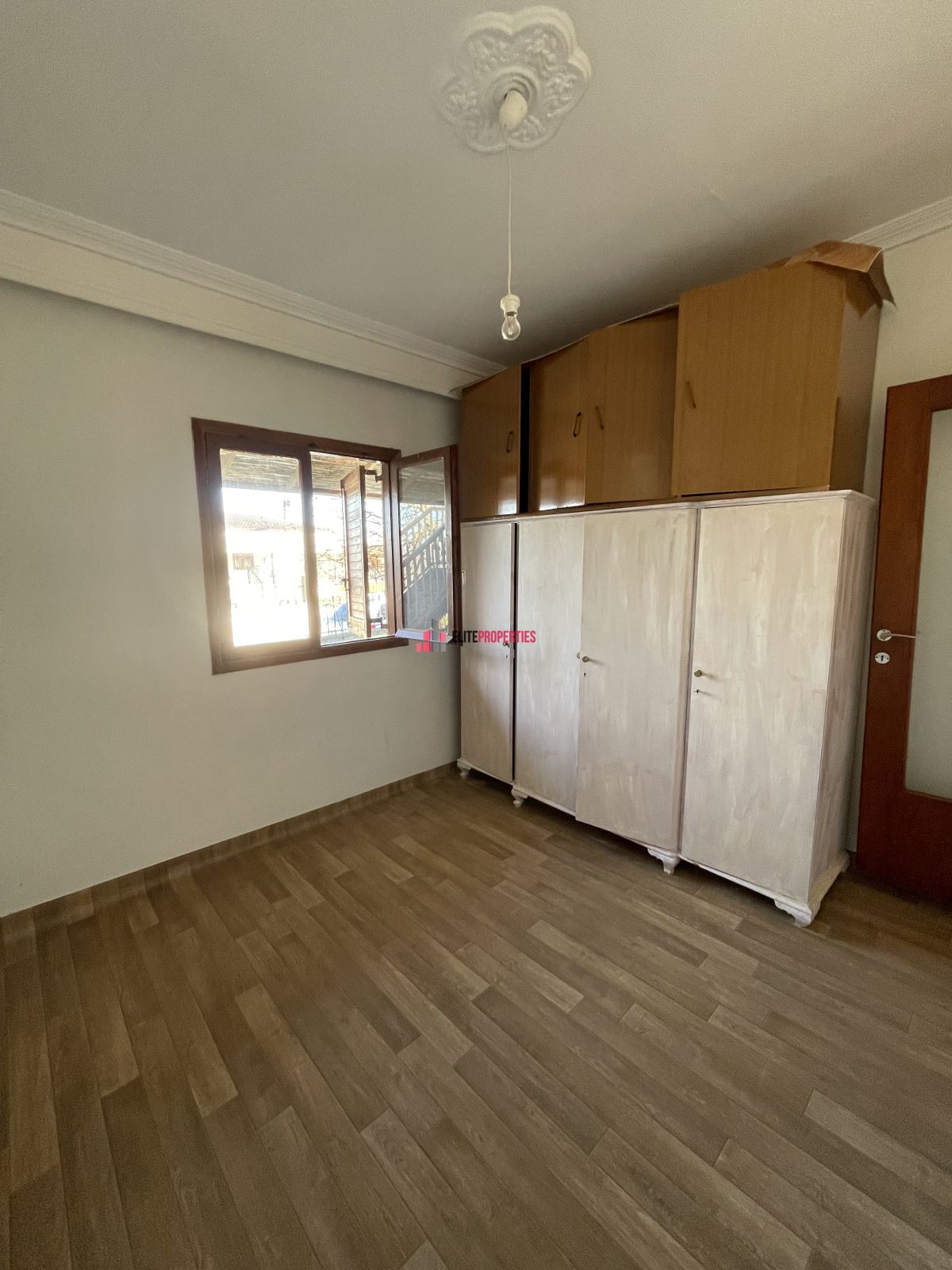 Διαθέτει κουφώματα ξύλινα, Τα δάπεδα είναι από ξύλο και πλακάκια.