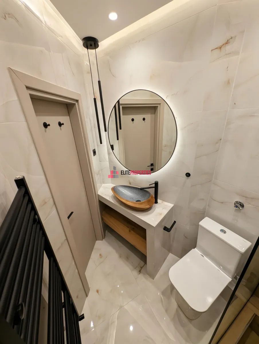 Διαθέτει κουφώματα συνθετικά με διπλά τζάμια. Τα δάπεδα είναι από πλακάκια. Στα θετικά στοιχεία του αξίζει να επισημανθεί η πλήρης επίπλωση και η θερμοπρόσοψη.