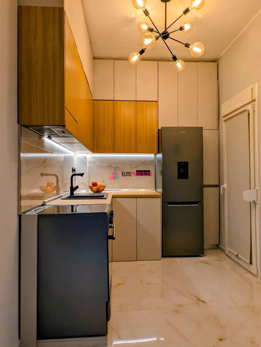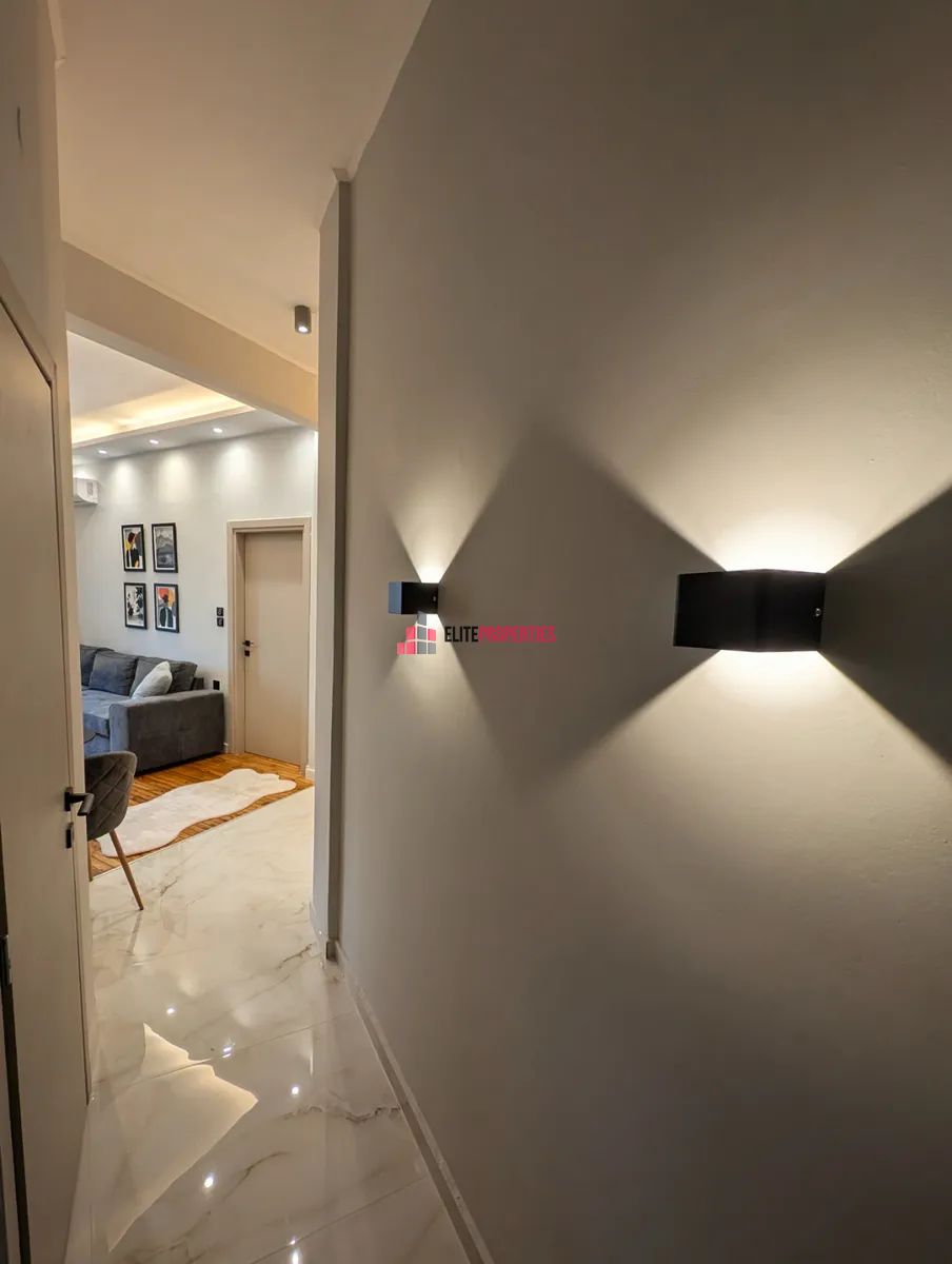 Αποτελείται από 2 δωμάτια με ντουλάπα στο ένα , σαλόνι, κουζίνα εξοπλισμένη με ηλεκτρικές συσκευές (φούρνο , ψυγείο , πλυντήριο - στεγνωτήριο) και 1 μπάνιο. Το ακίνητο είναι πλήρως εξοπλισμένο. Επιπλέον διαθέτει βεράντα.