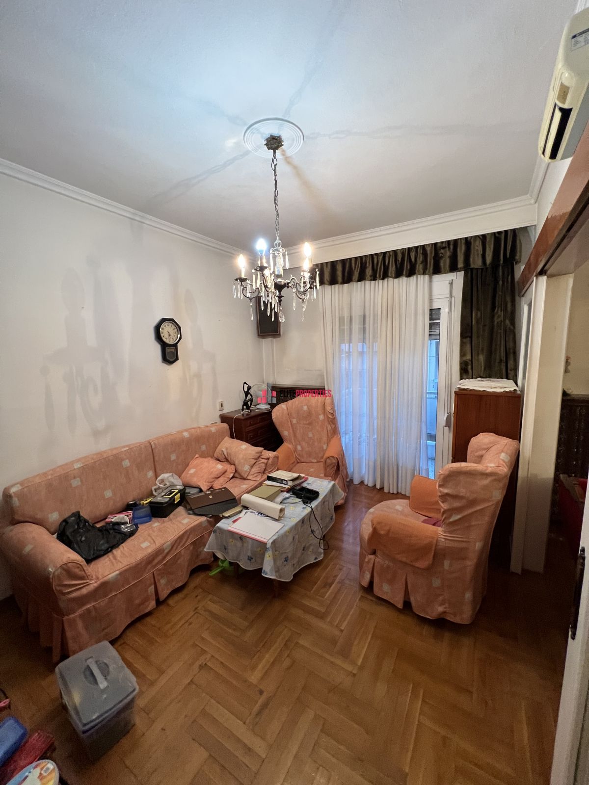 It has synthetic frames with double glazing and are equipped with screens. There are also awnings on its balconies. The floors are made of wood and tiles.